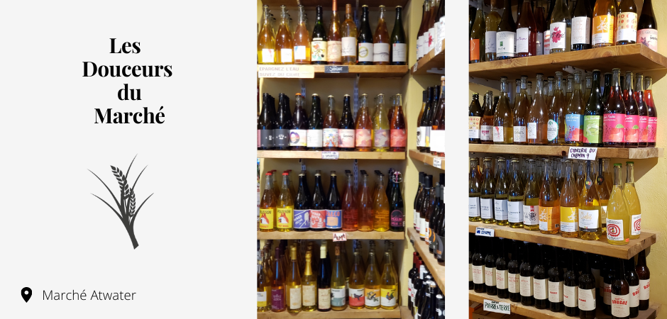 Les Douceurs du Marché est une épicerie fine située au Marché Atwater depuis plus de 25 ans. De plus, elle se spécialise dans la vente de cidres et de vins du Québec. En effet, cette épicerie a une excellente sélection de cidres tranquilles, effervescents, rosés, de feu ou de glace. De classique à « funky », il y en a pour tous les goûts!