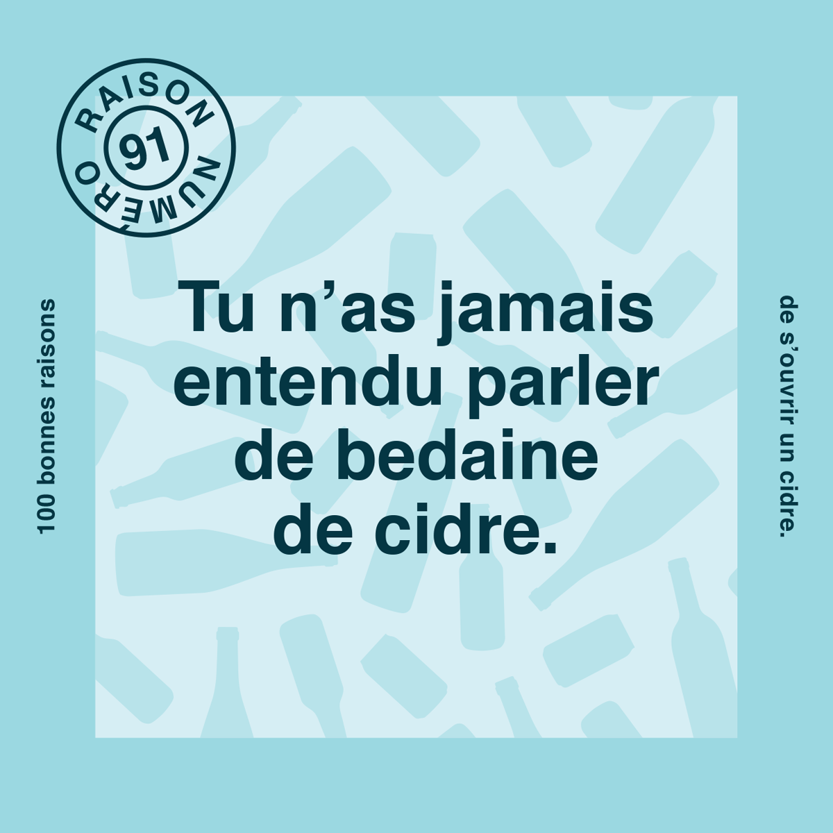 Dis-nous quelle est ta meilleure raison de boire du cidre. Ta raison pourrait être sélectionnée et partagée sur nos réseaux sociaux. Santé!