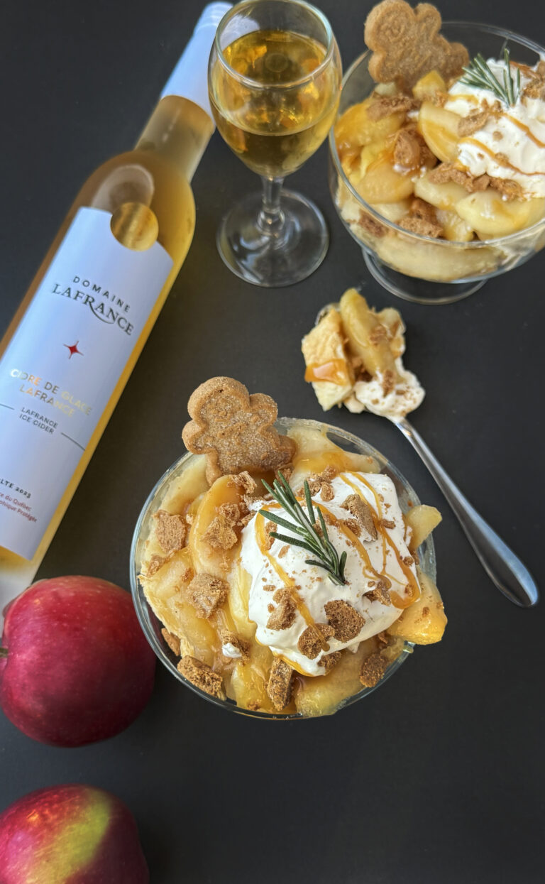Tatin déstructurée aux pommes, caramel salé et crème fouettée au romarin