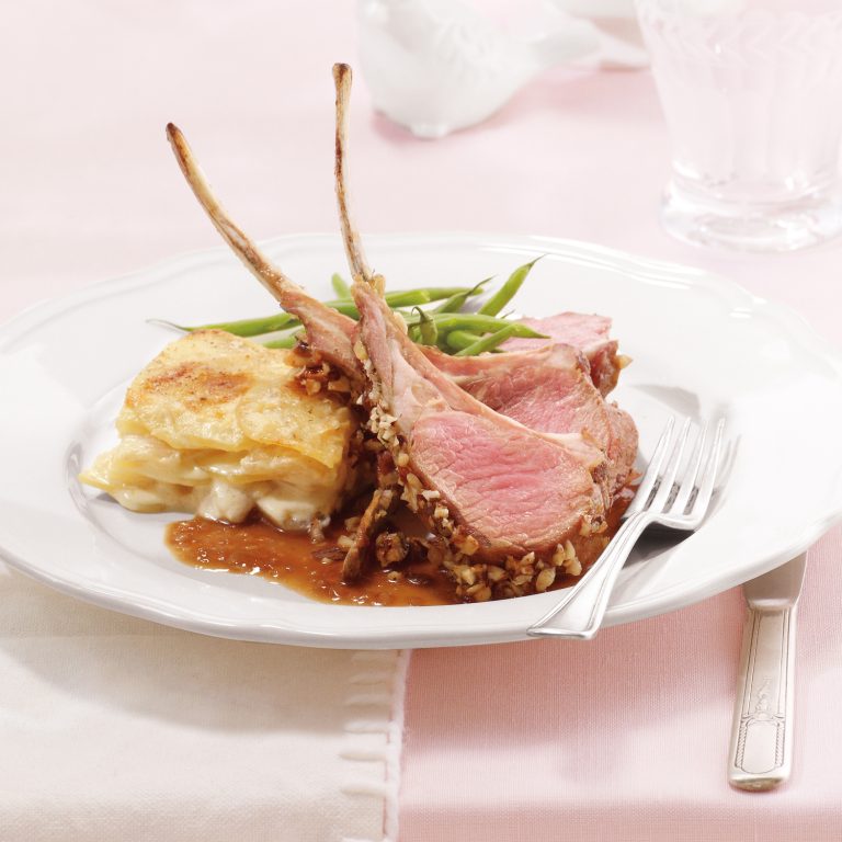 Carré d’agneau en croûte de noisettes et sauce au cidre de glace