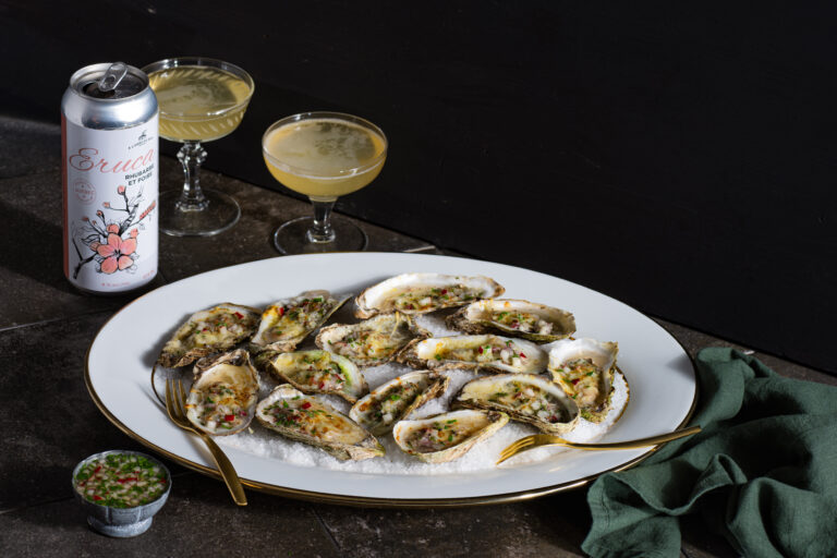 - Passer sous le grill pour faire fondre et dorer le fromage. Déguster les huîtres immédiatement, accompagnées de cidre Eruca rhubarbe et poire.