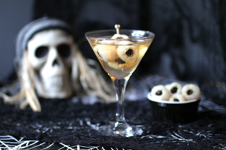 4. Assembler les litchis et les bleuets pour former des yeux et fixer sur un pic à garniture.