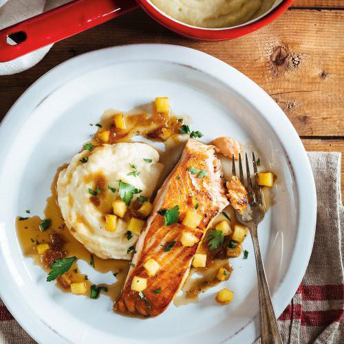 - Retourner le saumon côté peau et poursuivre la cuisson 4 minutes ou jusqu’à la cuisson désirée.